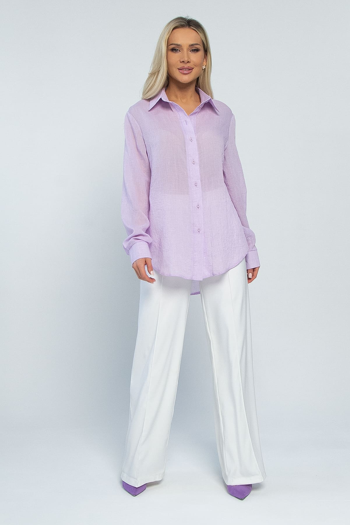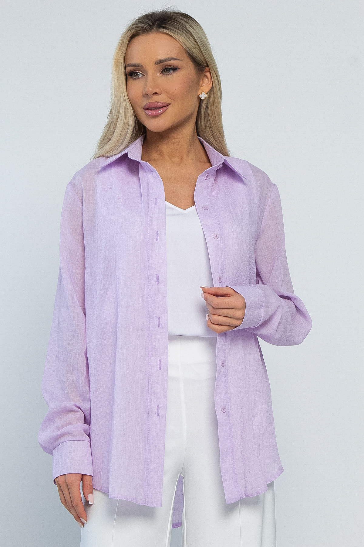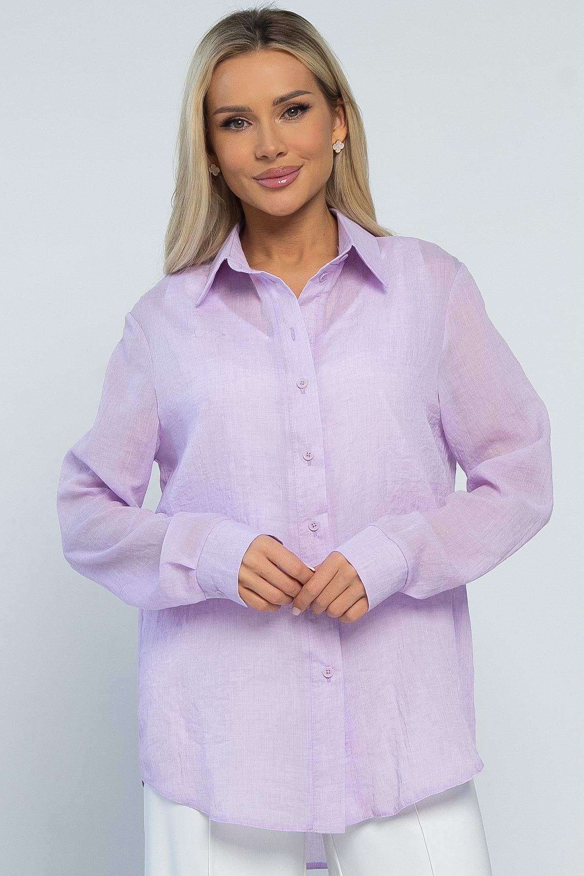 Лёгкая женская рубашка прямого кроя из натуральных материалов — идеальный выбор для тёплых дней! Благодаря своему однотонному дизайну, она легко комбинируется с различными элементами вашего гардероба. Длинные рукава и классический воротник придают образу элегантность и утончённость. Отлично подходит как для создания лёгких летних нарядов, так и для дополнения стильного образа. Она не только обеспечит комфорт, но и станет стильным акцентом в любом образе.