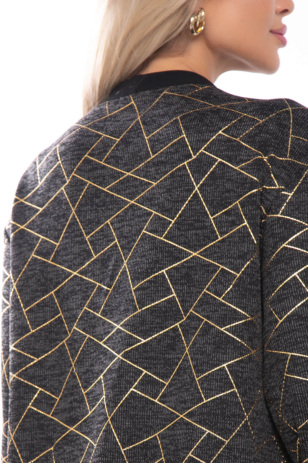 Платье для комфортного повседневного образа. Такие вещи очень универсальны и всегда выручают в ситуации, когда не знаешь, что надеть. Платье прямого кроя свободного силуэта. Рукава длинные со спущенным плечевым швом. Изделие украшает принт с вставками золотого цвета. В боковых швах есть карманы.