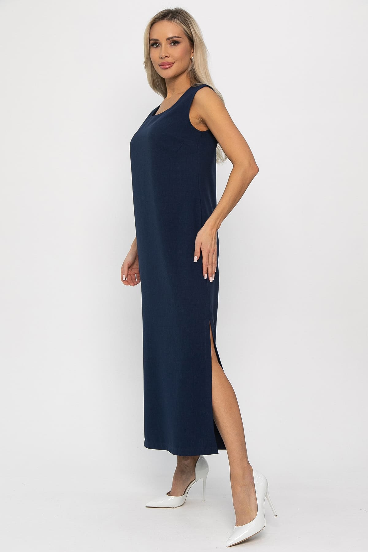 Платье-сарафан в синем цвете — это комфортный элемент гардероба, который станет незаменимым для любой женщины. Безрукавный крой обеспечивает максимальный комфорт и свободу движений, что особенно приятно в теплую погоду. Разрезы по бокам добавляют легкость и делают платье еще более комфортным. Идеально для прогулок по городу или встреч с друзьями, сочетая стиль и практичность.